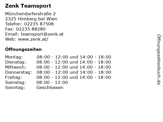| Öffnungszeiten Zenk Teamsport in Himberg bei Wien anzeigen | |