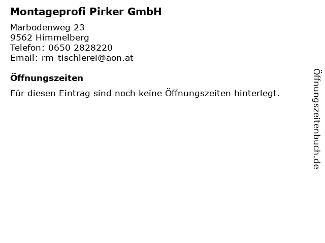 | Öffnungszeiten Montageprofi Pirker GmbH in Himmelberg anzeigen | |