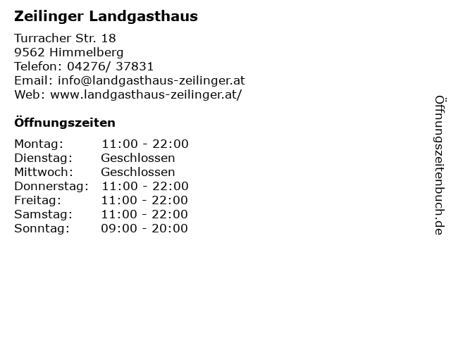 | Öffnungszeiten Zeilinger Landgasthaus in Himmelberg anzeigen | |