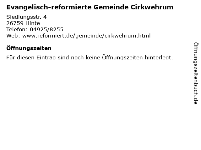 | Evangelisch-reformierte Gemeinde Cirkwehrum anrufen | |