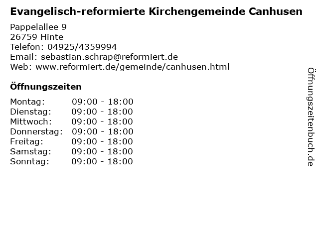 Branchen & Suchbegriffe zu Evangelisch-reformierte Kirchengemeinde Canhusen:canhusen, evangelisch, gemeinde, gottesdienst, kirche, kirchengemeinde, pfarrer, reformierte, samtgemeinde |