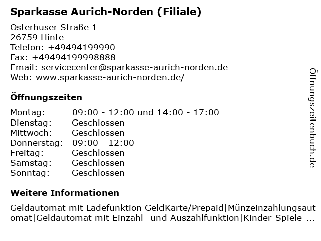 Branchen & Suchbegriffe zu Sparkasse Aurich-Norden (SB-Filiale):aurich, norden, sb, sparkasse |