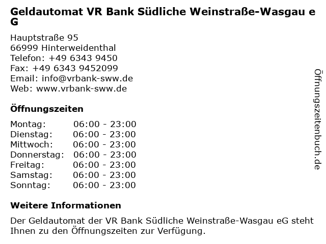 Branchen & Suchbegriffe zu Geldautomat VR Bank Südliche Weinstraße-Wasgau eG:bank, bargeld, eg, geldautomat, südliche, vr, wasgau, weinstraße |
