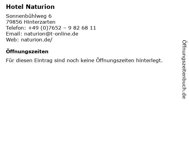 | Öffnungszeiten Hotel Naturion in Hinterzarten anzeigen | |