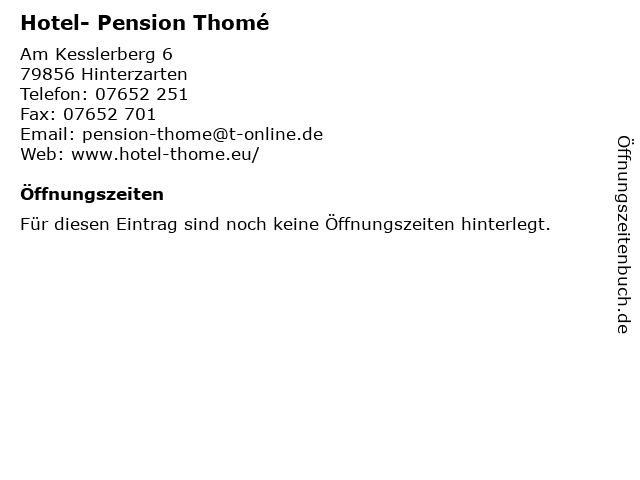 | Öffnungszeiten Hotel- Pension Thomé in Hinterzarten anzeigen | |