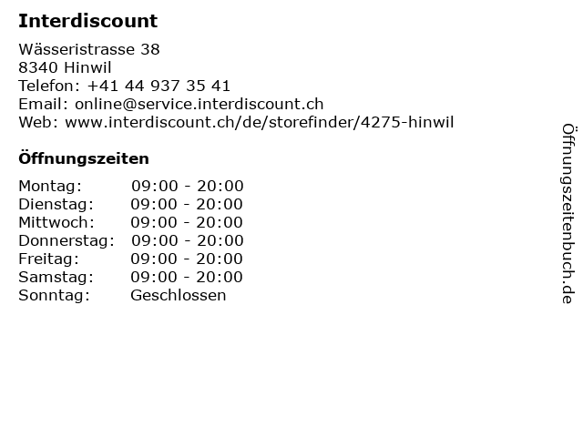 | Öffnungszeiten Interdiscount in Hinwil anzeigen | |