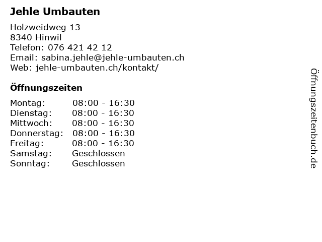 | Öffnungszeiten Jehle Umbauten in Hinwil anzeigen | |
