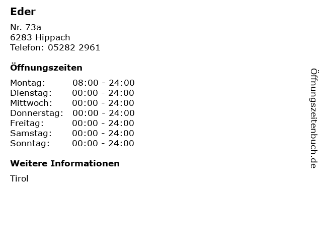| Öffnungszeiten Eder in Hippach anzeigen | |