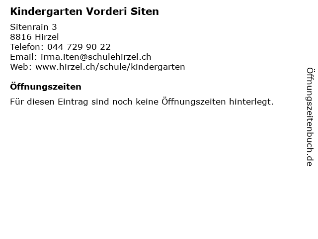 | Öffnungszeiten Kindergarten Vorderi Siten in Hirzel anzeigen | |