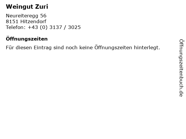 | Öffnungszeiten Weingut Zuri in Hitzendorf anzeigen | |