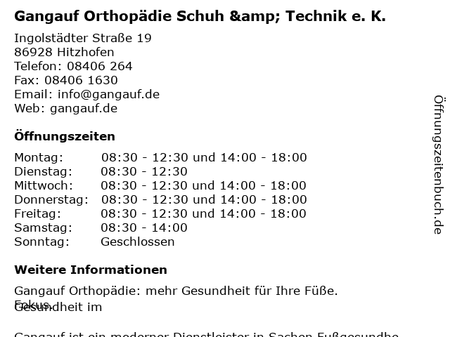 Branchen & Suchbegriffe zu Gangauf Orthopädie Schuh & Technik e. K.:e., gangauf, k., orthopädie, schuh, technik |