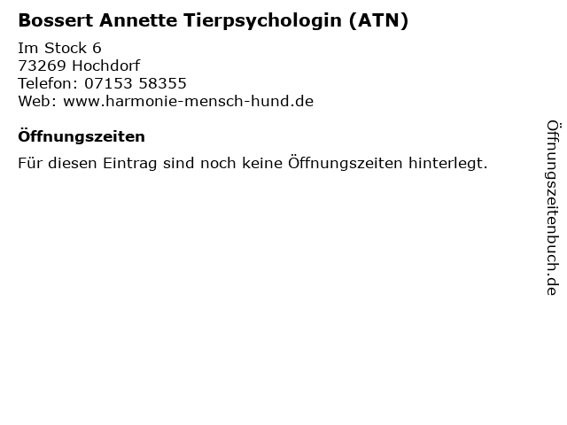 | Bossert Annette Tierpsychologin (ATN) anrufen | |
