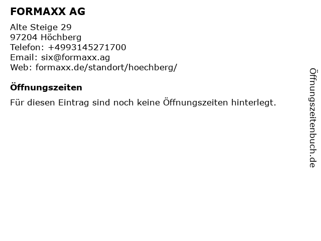 | Öffnungszeiten FORMAXX AG in Höchberg anzeigen | |