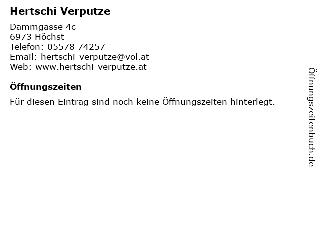 | Öffnungszeiten Hertschi Verputze in Höchst anzeigen | |