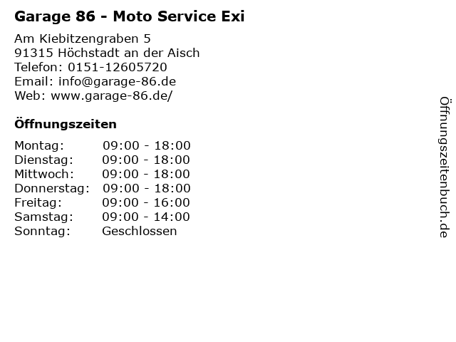 Branchen & Suchbegriffe zu Garage 86 - Moto Service Exi:86, exi, garage, moto, motorrad, motorradwerkstatt, reparatur, service, werkstatt |