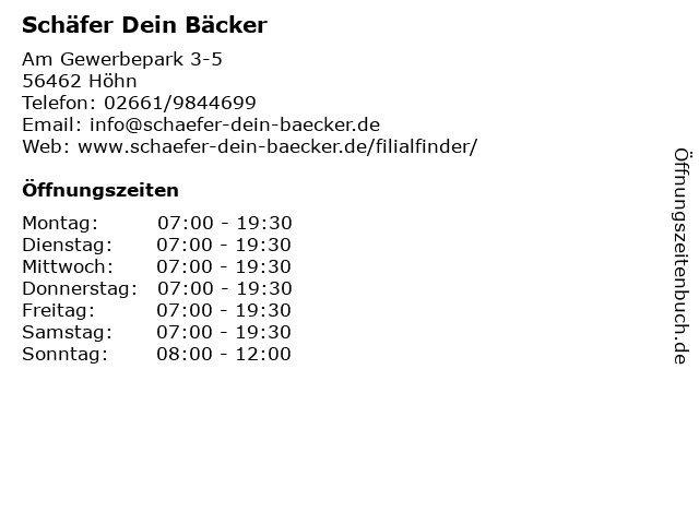 | Öffnungszeiten Schäfer Dein Bäcker in Höhn anzeigen | |