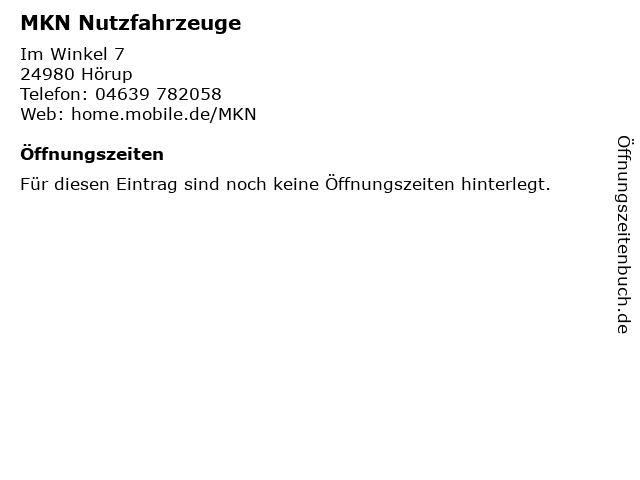 | Öffnungszeiten MKN Nutzfahrzeuge in Hörup anzeigen | |