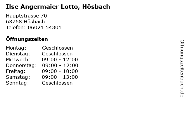Branchen & Suchbegriffe zu Ilse Angermaier Lotto, Hösbach:angermaier, annahmestellen, hösbach, ilse, inhaberin, lotto, toto/lotto |