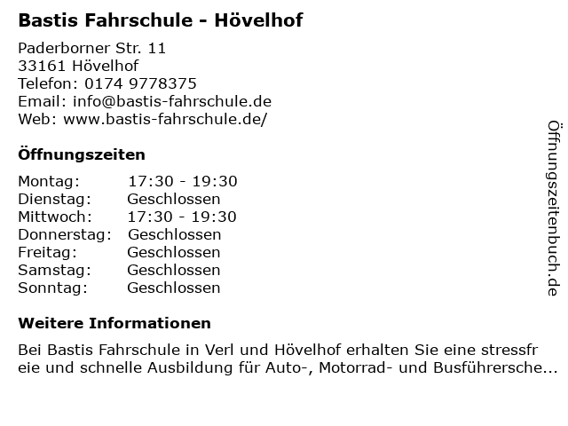 Branchen & Suchbegriffe zu Bastis Fahrschule - Hövelhof:bastis, fahrschule |
