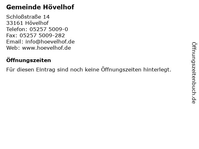 | Öffnungszeiten Gemeinde Hövelhof in Hövelhof anzeigen | |
