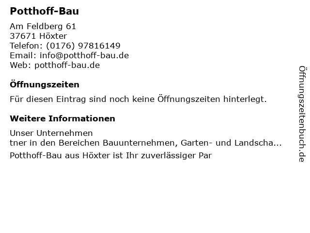 | Öffnungszeiten Potthoff-Bau in Höxter anzeigen | |