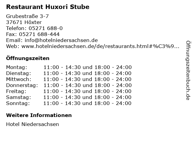 | Öffnungszeiten Restaurant Huxori Stube in Höxter anzeigen | |