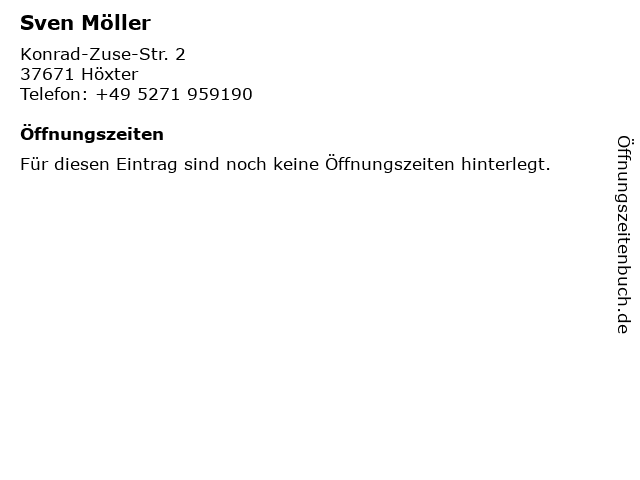 | Öffnungszeiten Sven Möller in Höxter anzeigen | |