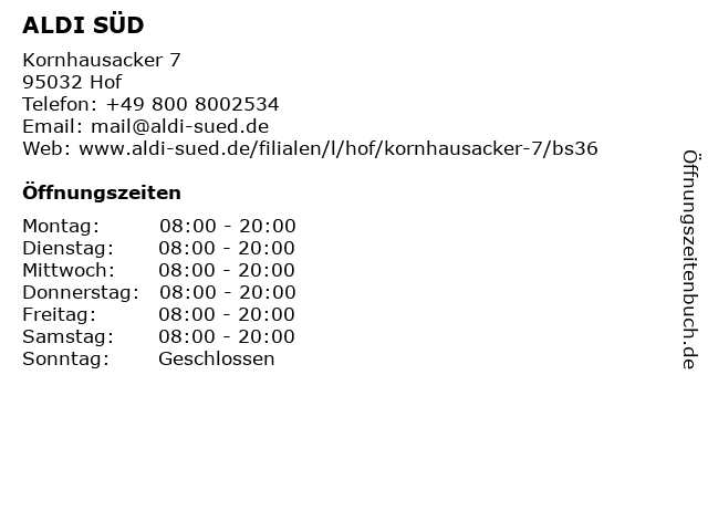 ALDI SÜD in Hof: Telefonnummer, Öffnungszeiten und Adresse