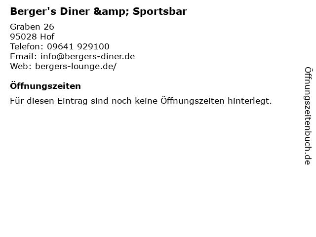 Öffnungszeiten Berger's Diner & Sportsbar in Hof anzeigen | |