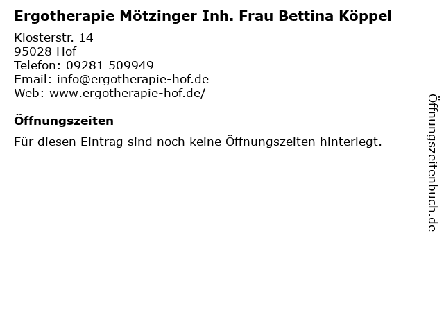 | Ergotherapie Mötzinger Inh. Frau Bettina Köppel anrufen | |