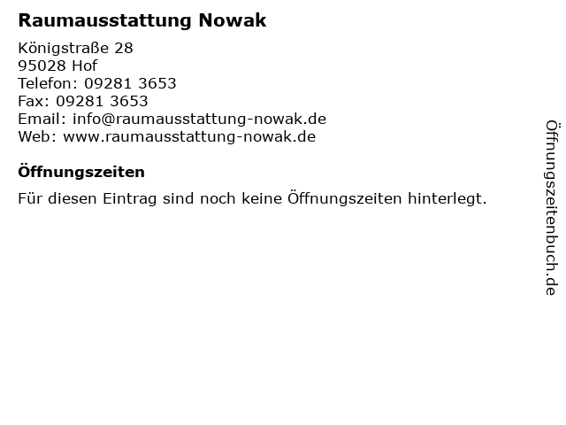 | Öffnungszeiten Raumausstattung Nowak in Hof anzeigen | |