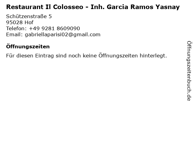 | Restaurant Il Colosseo - Inh. Garcia Ramos Yasnay anrufen | |