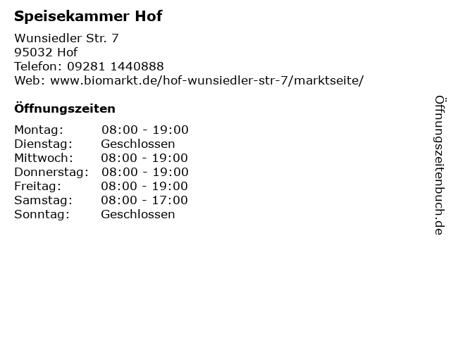 | Öffnungszeiten Speisekammer Hof in Hof anzeigen | |