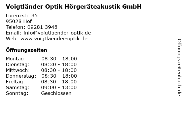 5 Hallmann Optik und Akustik (ehem. Fischer Optik-Akustik GmbH) (Entfernung: 1,20 km) August-Mohl-Straße 38, 95030 Hof 6 |