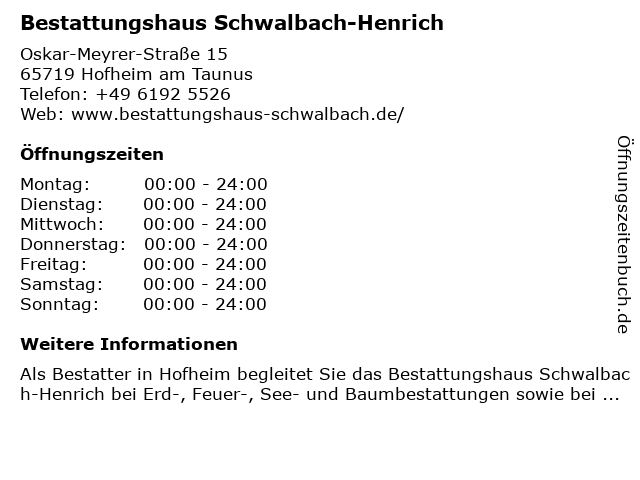 1 Bestattungsinstitut und Blumenhaus Schwalbach-Henrich GmbH (Entfernung: 0,02 km) Oskar-Meyrer-Straße 15, 65719 Hofheim 2 ESWE Versorgung Ladestation Glas Henrich (Entfernung: 0,66 km) Lorsbacher Straße 11, 65719 Hofheim am Taunus 5 Dipl. Ing. Hildegunde Henrich Freie Garten- und Landschaftsarchitektin (Entfernung: 4,83 km) Alt-Oberliederbach 4, 65835 Liederbach 6 |
