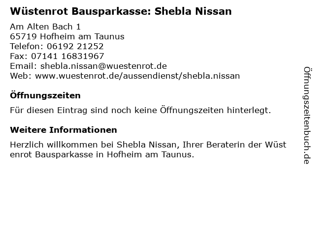 | Wüstenrot Bausparkasse: Shebla Nissan anrufen | |
