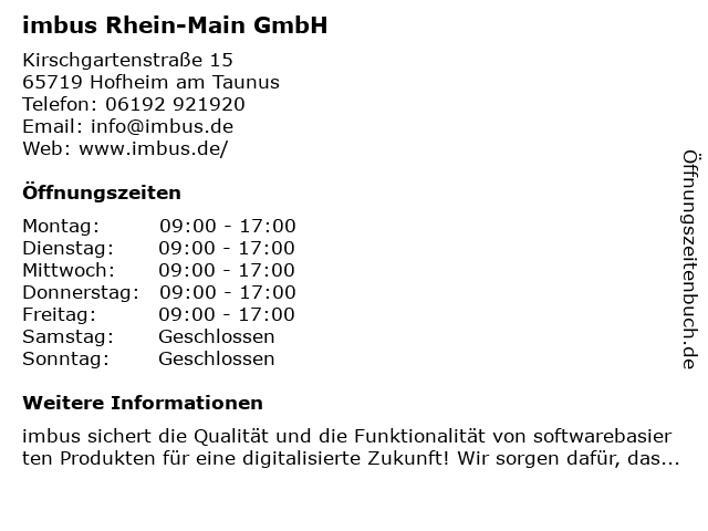 Branchen & Suchbegriffe zu imbus Rhein-Main GmbH:imbus, main, rhein |