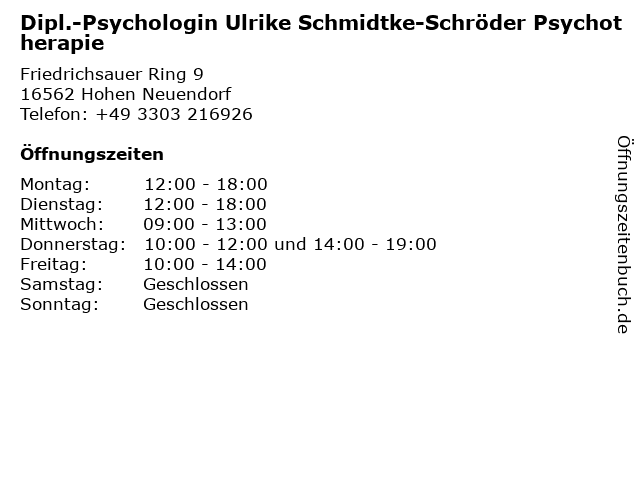 Branchen & Suchbegriffe zu Dipl.-Psychologin Ulrike Schmidtke-Schröder Psychotherapie:dipl., psychologe, psychologin, psychotherapie, schmidtke, schröder, ulrike |