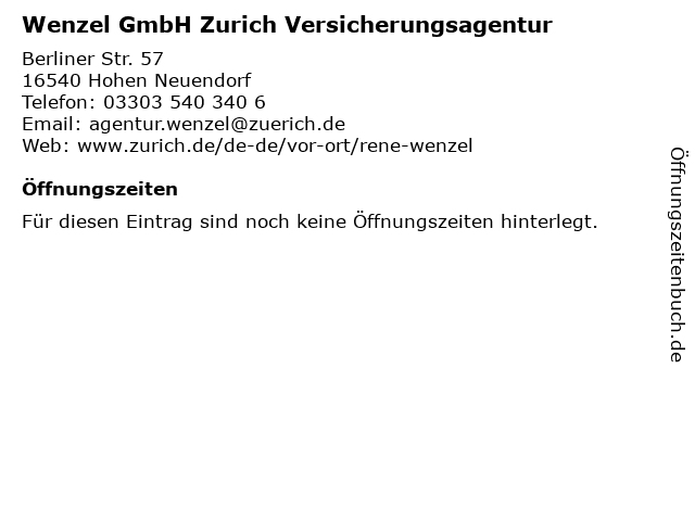 | Wenzel GmbH Zurich Versicherungsagentur anrufen | |
