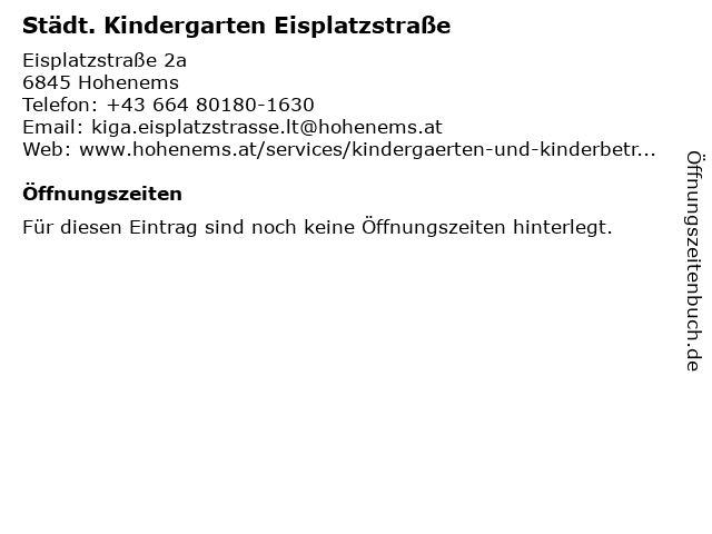 | Städt. Kindergarten Eisplatzstraße anrufen | |