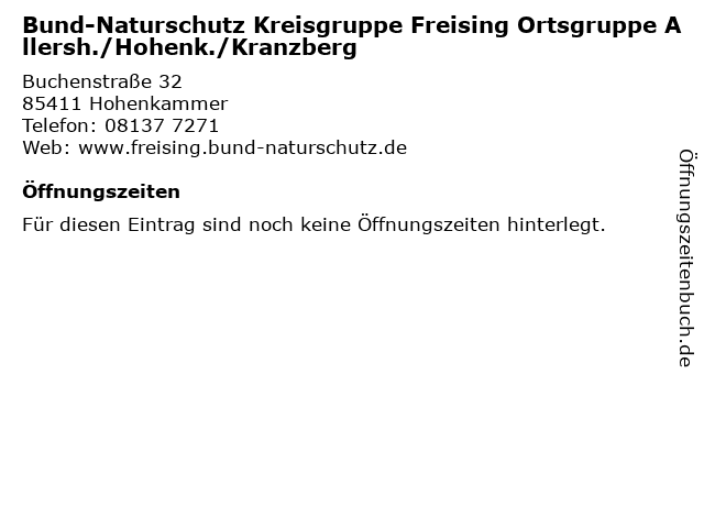 | Bund-Naturschutz Kreisgruppe Freising Ortsgruppe Allersh./Hohenk./Kranzberg anrufen | |