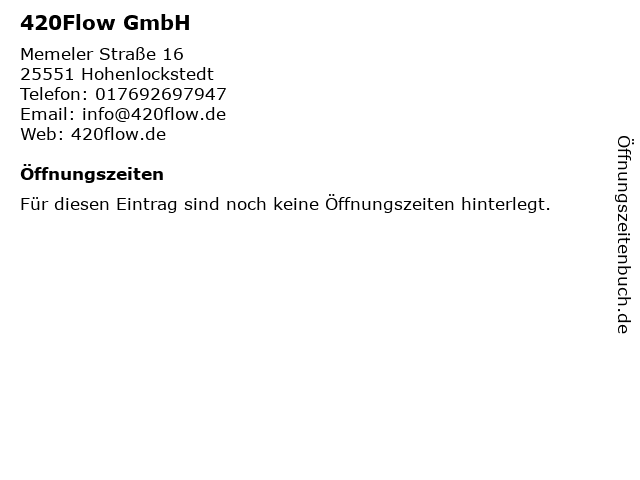 | Öffnungszeiten 420Flow GmbH in Hohenlockstedt anzeigen | |