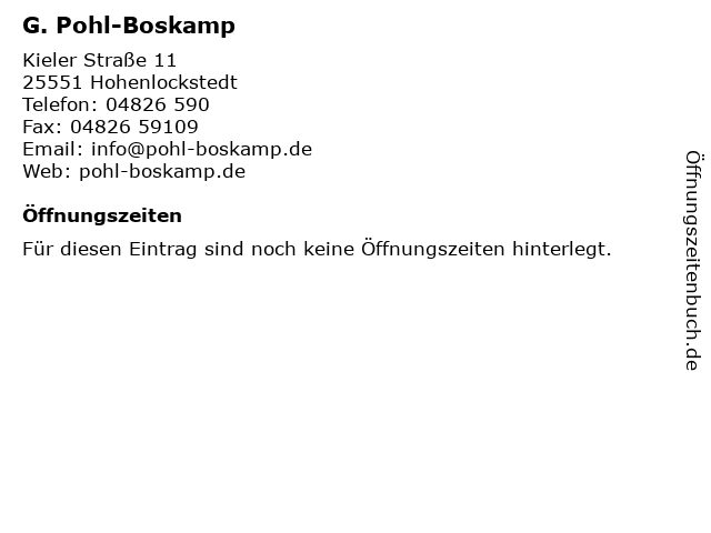 | Adresse G. Pohl-Boskamp in Hohenlockstedt anzeigen |