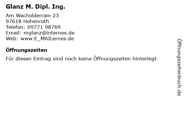 | Adresse Glanz M. Dipl. Ing. in Hohenroth anzeigen |