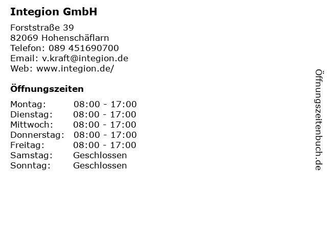 | Öffnungszeiten Integion GmbH in Hohenschäflarn anzeigen | |