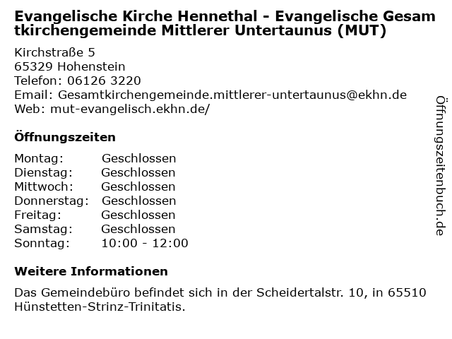 Branchen & Suchbegriffe zu Evangelische Kirche Hennethal - Evangelische Gesamtkirchengemeinde Mittlerer Untertaunus (MUT):evangelische, gesamtkirchengemeinde, hennethal, kirche, mittlerer, mut, untertaunus |