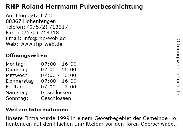 Branchen & Suchbegriffe zu RHP Roland Herrmann Pulverbeschichtung:herrmann, lohnbeschichtungen, oberflächenveredelung, pulverbeschichtung, pulverbeschichtungen, pulverlacke, pulverlackierungen, rhp, roland, sandstrahlarbeiten |