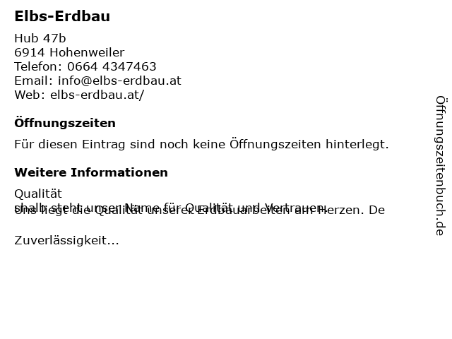 | Öffnungszeiten Elbs-Erdbau in Hohenweiler anzeigen | |