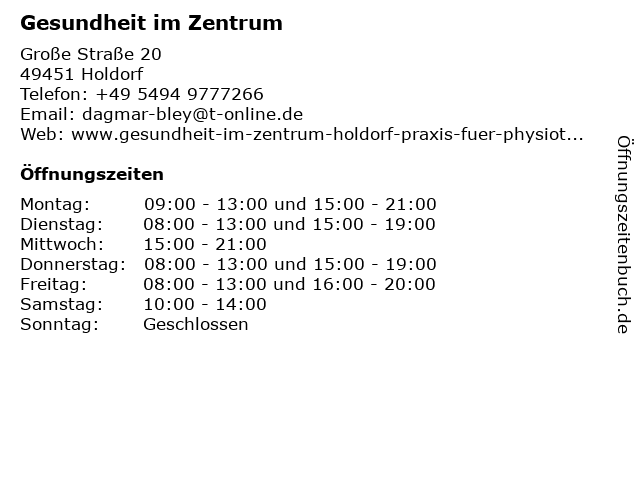 | Öffnungszeiten Gesundheit im Zentrum in Holdorf anzeigen | |