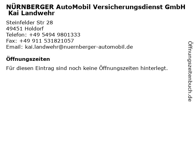 | NÜRNBERGER AutoMobil Versicherungsdienst GmbH Kai Landwehr anrufen | |